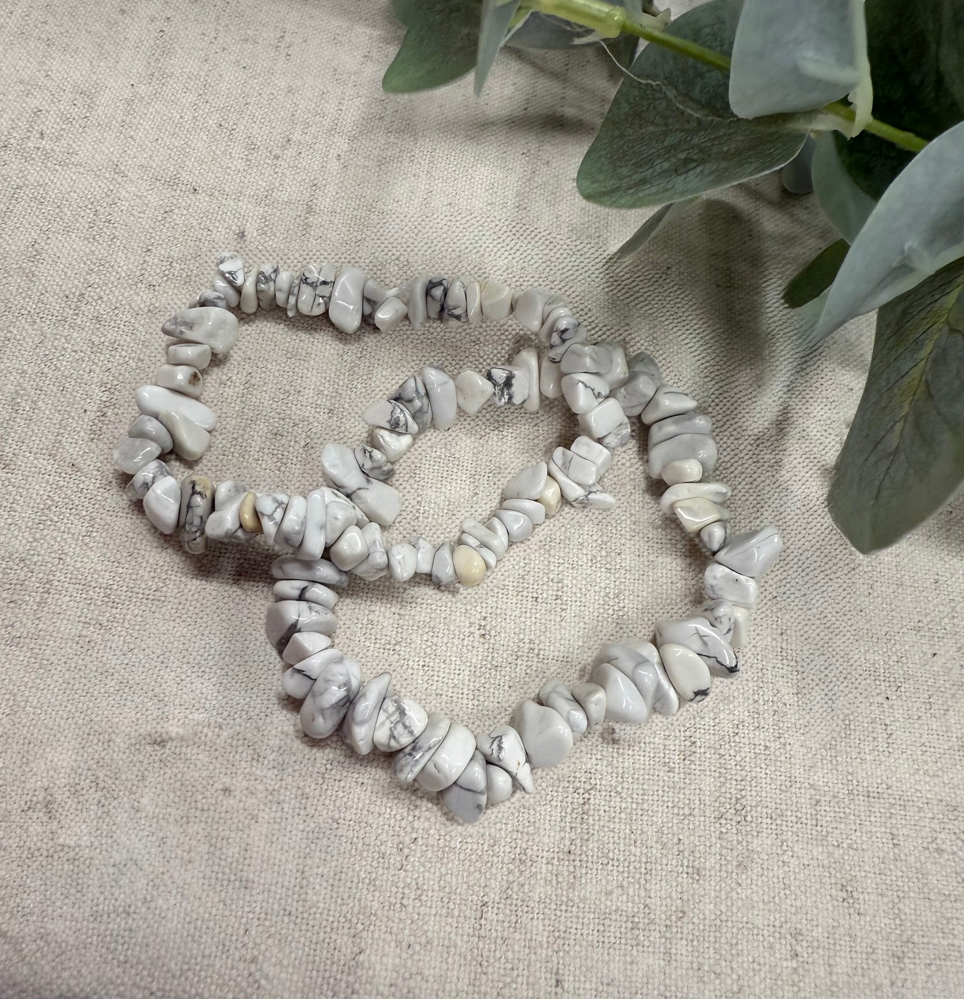 Experience calm and relaxation with our White Howlite Crystal Chip Bracelet! Each natural gemstone varies in color and size, chosen intuitively. Reduce stress, absorb negative energy, and improve sleep with this calming mineral.